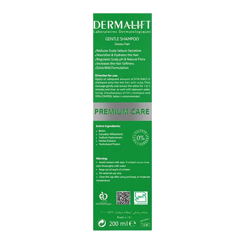 شامپو روزانه موی چرب ویتا دیلی درمالیفتDermalift Vita Daily Gentle Shampoo Greasy Hair