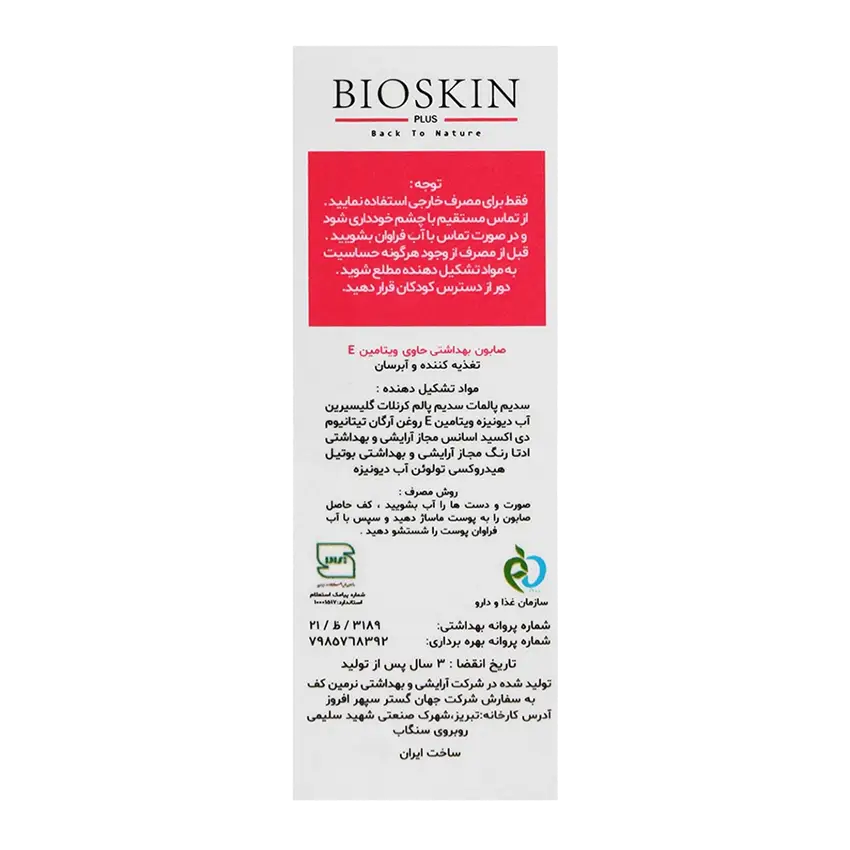 صابون گلیسیرین ویتامین E بایو اسکینBio Skin Vegeteable Based Vitamin E Soap