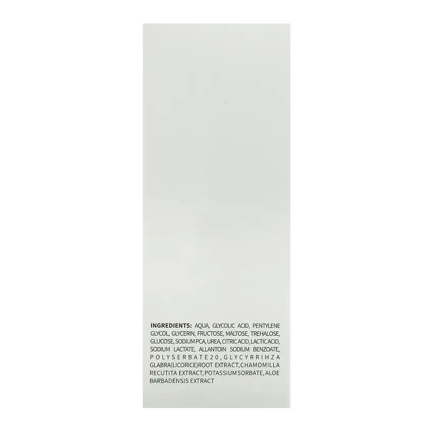 آب – گلیکولیک اسید – عصاره هاماملیس – بوتیلن گلیکول – پنتیلن گلیکول – گلیسرین – فروکتوز – مالتوز – ترهالوز – گلوکز – سدیم PCA – اوره – سیتریک اسید – لاکتیک اسید – سدیم لاکتات – آلانتوئین – سدیم بنزوات – پلی سوربات-20 – عصاره ریشه لیکوریس – عصاره بابونه – پتاسیم سوربات – عصاره آلوئه ورا – دی سدیم ا.د.ت.آ.