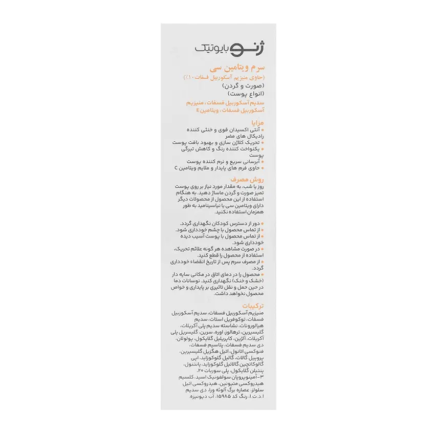 مهمترین ترکیبات سرم ویتامین سی ژنوبایوتیک حاوی منیزیم آسکوربیل فسفات