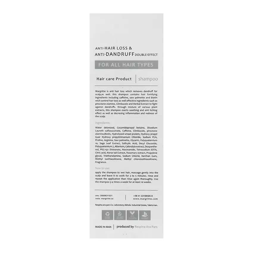 شامپو ضد شوره و تقویت کننده دبل افکت مارگریتMargritte Double Effect Anti Hair Loss And Anti Dandruff Shampoo