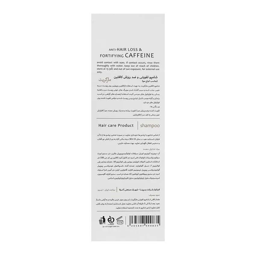 شامپو تقویت کننده و ضد ریزش کافئین مارگریتMargritte Caffeine Anti Hair Loss And Fortifying Shampoo