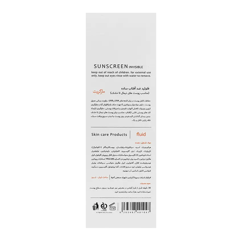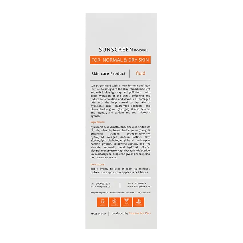 فلوئید ضد آفتاب بی رنگ پوست خشک مارگریتMargritte Invisible Fluid Sunscreen For Dry Skin