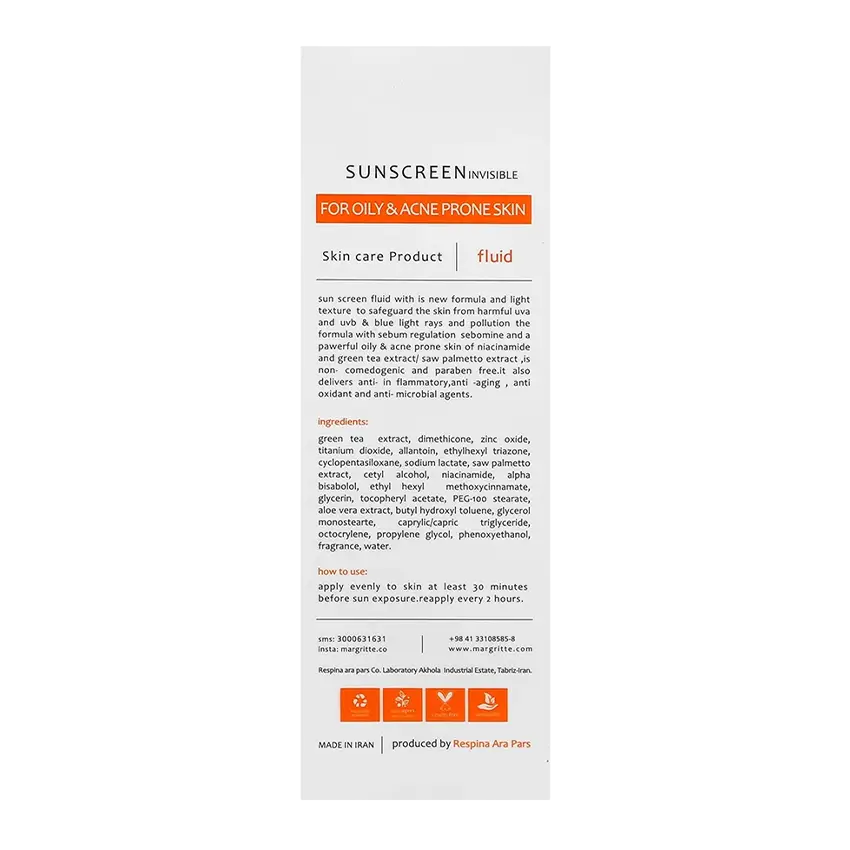 فلوئید ضد آفتاب بی رنگ پوست چرب مارگریتMargritte Invisible Fluid Sunscreen For Oily Skin