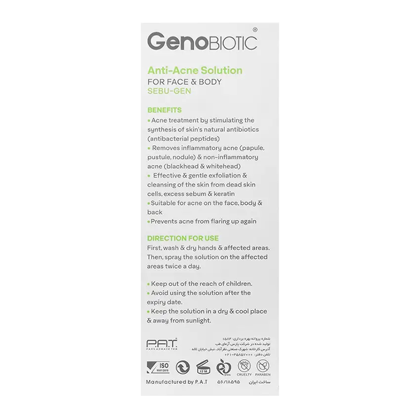 محلول ضد آکنه صورت و بدن ژنوبایوتیکGeno Biotic Sebu Gen Anti Acne Solution