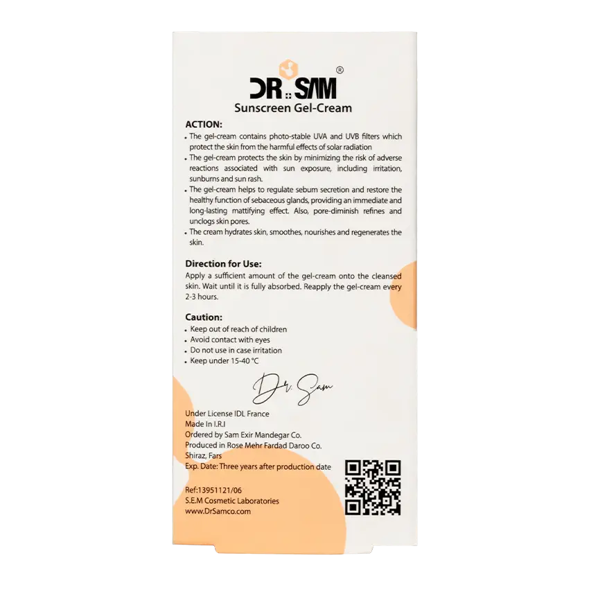 ژل کرم ضد آفتاب بی رنگ پوست چرب دکتر سامDr Sam Sunscreen Gel Cream For Oily And Acne Prone Skin
