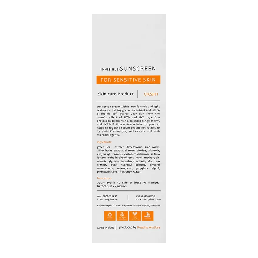 کرم ضد آفتاب بی رنگ پوست حساس مارگریت SPF30
