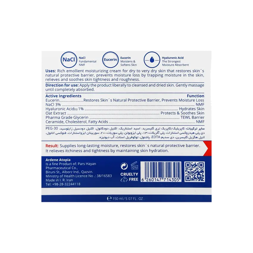 کرم مرطوب کننده و نرم کننده قوی آتوپیا آردنArdene Atopia Dry Relief Moisturizing and Softening Cream