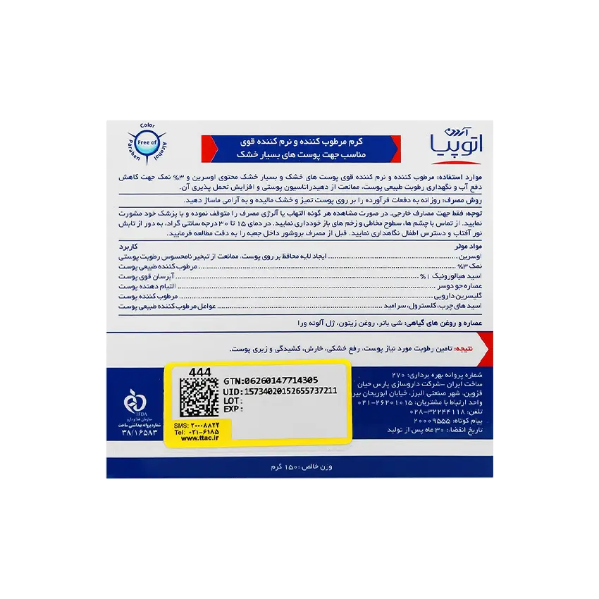 اثرات و عملکرد کرم مرطوب کننده و نرم کننده پوست خشک آتوپیا آردن